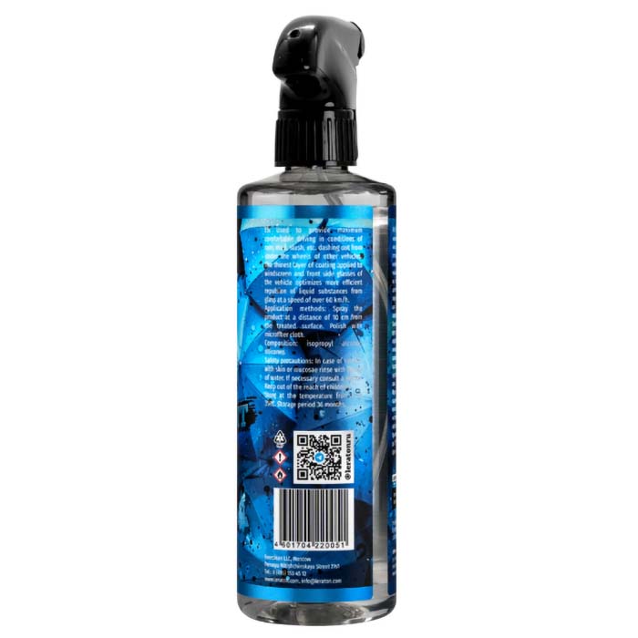 Применяется для обеспечения максимально комфортного вождения автомобиля в условиях дождя, летящей из-под колес других автомобилей грязи, снега и т.п. Тончайший слой покрытия, нанесенный на ветровое и боковые стекла автомобиля, способствует более эффективному отталкиванию жидких субстанций от стекла на скорости выше 60 км/ч.