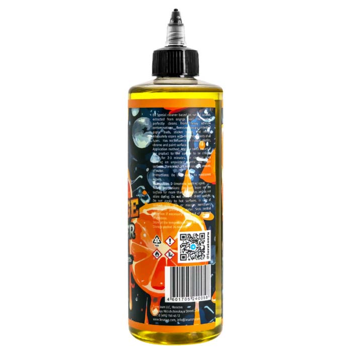 Специальный очиститель на основе естественных растворителей, извлеченных из кожуры апельсина. Средство является великолепным очистителем кузова от тяжелых клеевых загрязнений. Очищает от глубоко въевшихся тополиных почек, следов от наклеек и насекомых. Хорошо справляется с нефтяными загрязнениями любых типов. Не влияет на резину, пластик, хром и лакокрасочную поверхность.