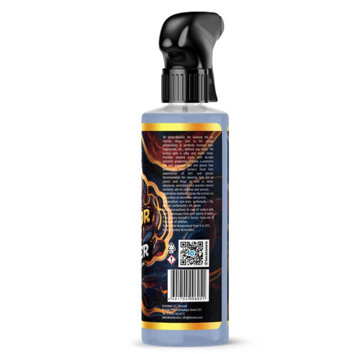 IQ Detailer – спрей-детейлер для интерьера, который помогает поддерживать салон автомобиля в чистоте. Благодаря уникальному составу, IQ Detailer отлично удаляет разные типы загрязнений, не оставляя после себя разводов. Поверхность приобретает шелковисто-матовый оттенок. При этом спрей-детейлер наделяет обработанные детали стойкими антистатическими свойствами, защищая салон автомобиля от глубокого проникновения грязи и жира при дальнейшей эксплуатации. IQ Detailer рекомендован для чистки и консервации пластика и винила, а также металлических, алюминиевых, лакированных и деревянных элементов интерьера. Он полностью готов к применению и безопасен для детей и животных.Аромат, мускусно-древесный