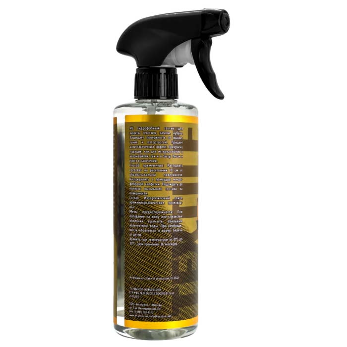 Гидрофобный состав для защиты текстиля, замши, нубука. Защищает поверхность от выцветания и потёртостей. Придаёт антистатический эффект. Прекрасно подходит как для использования в автомобилях, так и в быту. Лёгок и прост в нанесении.