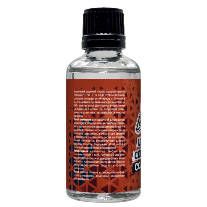 Керамический защитный состав. Наделяет поверхность грязе- и водоотталкивающими свойствами, повышает устойчивость к УФ-лучам и агрессивной химии. Предназначен для нанесения на ЛКП и колесные диски. Технические характеристики,Толщина 1 слоя, 40-80 нм:Краевой угол смачивания, 103 градуса:Стойкость к щелочам и кислотам, pH 1-14:Стойкость к растворителям, алкановые, ароматические:Стойкость к УФ лучам:Долговечность, до 50 контактных моек/ до 20000 км/ до 6 месяцев:Расход, 1-2 мл/м2.Состав набора,Ceramic Coating Light – 50 мл:Аппликатор для нанесения APP1 – 1 шт:Салфетки Suede MFC – 5 шт.