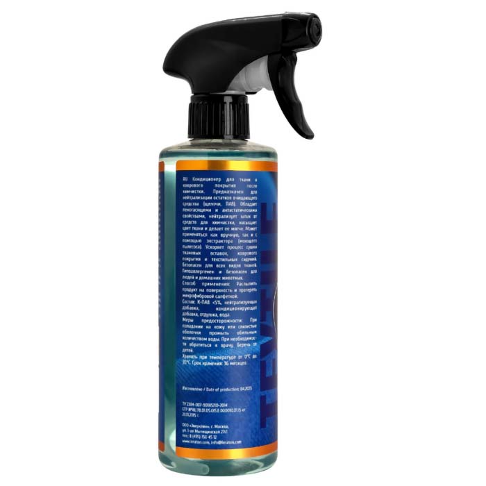 Предназначен для нейтрализации остатков очищающего средства (щелочи, ПАВ). Обладает пеногасящими и антистатическими свойствами, нейтрализует запах от средств для химчистки, насыщает цвет ткани и делает ее мягче. Может применяться как вручную, так и с помощью экстрактора (моющего пылесоса). Ускоряет процесс сушки тканевых вставок, коврового покрытия и текстильных сидений. Безопасен для всех видов тканей. Гипоаллергенен и безопасен для людей и домашних животных.