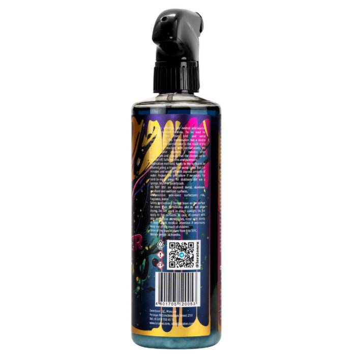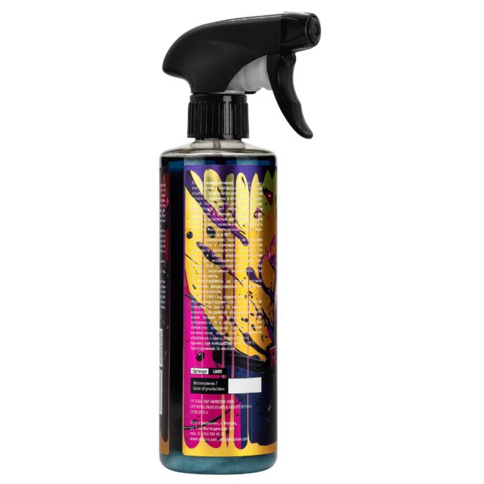 Высокоэффективное, кислотно-неактивное средство с нейтральным рН. Усиленная формула. Применяется для очистки колесных дисков от ржавчины и металлических вкраплений. Состав имеет двойную индикацию, фиолетовый цвет является результатом вступления в реакцию состава с загрязнениями, золотистый цвет появляется спустя 2 минуты после нанесения и сигнализирует о том, что очиститель можно смывать. Безопасен для дисков и ЛКП.