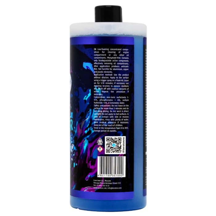 Низкопенный концентрированный состав для очистки моторного отсека и других поверхностей от масляных загрязнений. Без фосфатов. Содержит только биоразлагаемые активные компоненты, эффективно устраняющие остатки масла, жира и копоти. После применения оставляет антистатическую пленку. Не вредит алюминиевым, медным и пластиковым элементам.