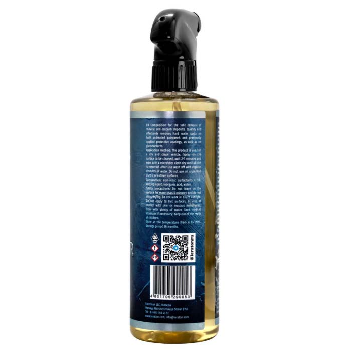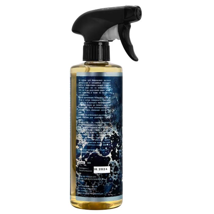 Состав для безопасного удаления минеральных и кальциевых отложений. Быстро и эффективно очищает следы от жесткой воды как на необработанном лакокрасочном покрытии, так и на нанесенном ранее защитном покрытии, а также на стеклянных поверхностях.
