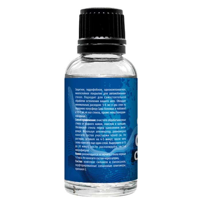 Glass Coating – защитное, гидрофобное, однокомпонентное, многослойное покрытие для автомобильных стекол. Подходит для самостоятельной обработки остекления вашего авто. Обладает минимальным расходом, 5-6 мл в два слоя на переднюю полусферу (два боковых и лобовое) и 10-11 мл на все стекла, кроме люка/панорамной крыши. Состав упрощает очистку от насекомых и снижает образование льда.Технические характеристики,Толщина 1 слоя, 10-15 нм:Светопропускаемость, 99,9%:Краевой угол смачивания, 118,5 градусов:Эффект самоочищения стекла (срыв капель), после 40 км/ч:Стойкость к щелочам и кислотам, pH 1-14:Стойкость к растворителям, алкановые, ароматические:Стойкость к УФ лучам:Долговечность, 3-12 месяцев:Расход, 2 мл/м2.Состав набора,Glass Coating – 30 мл:Аппликатор для нанесения APP1 – 1 шт:Салфетки Suede MFC – 3 шт.